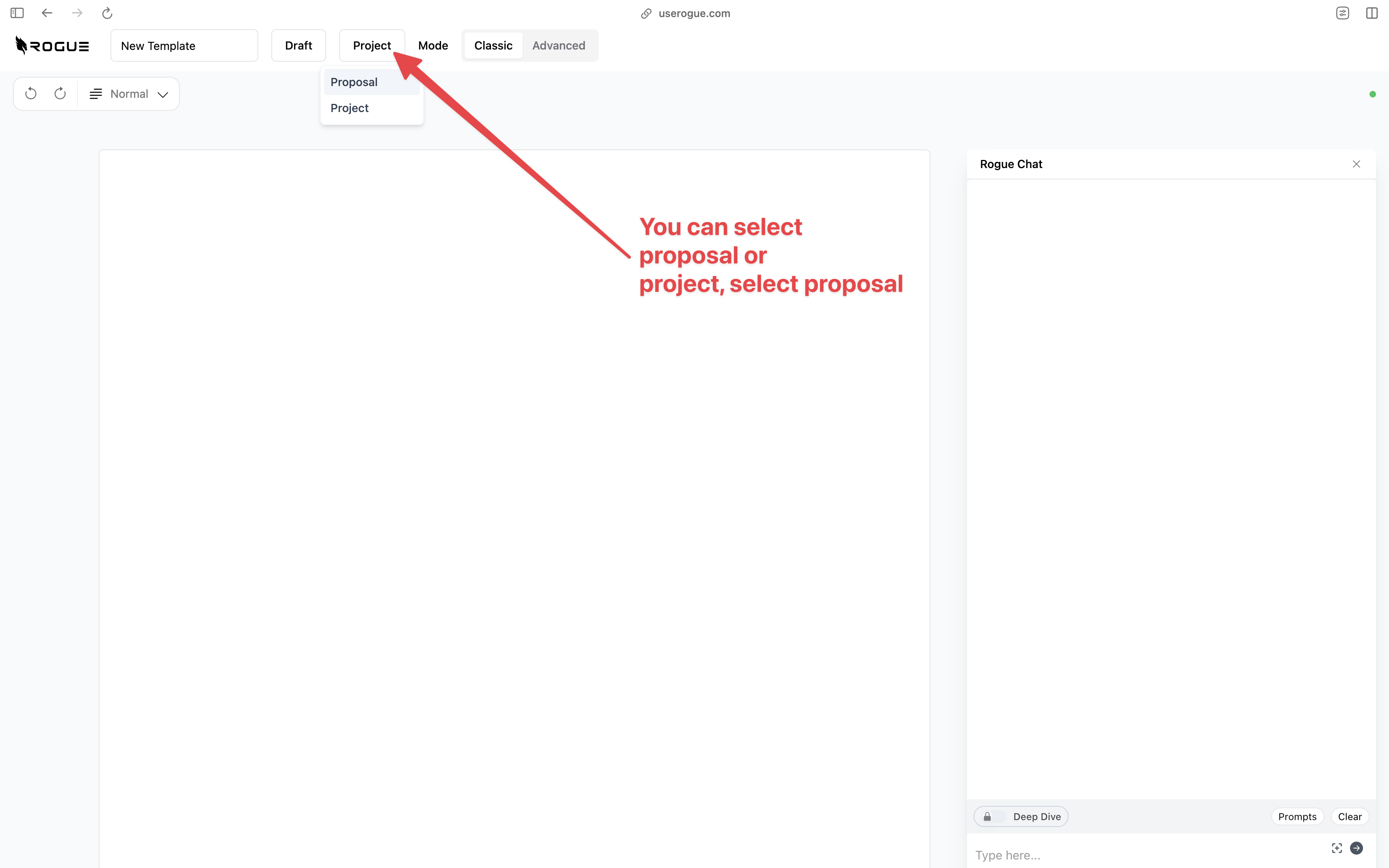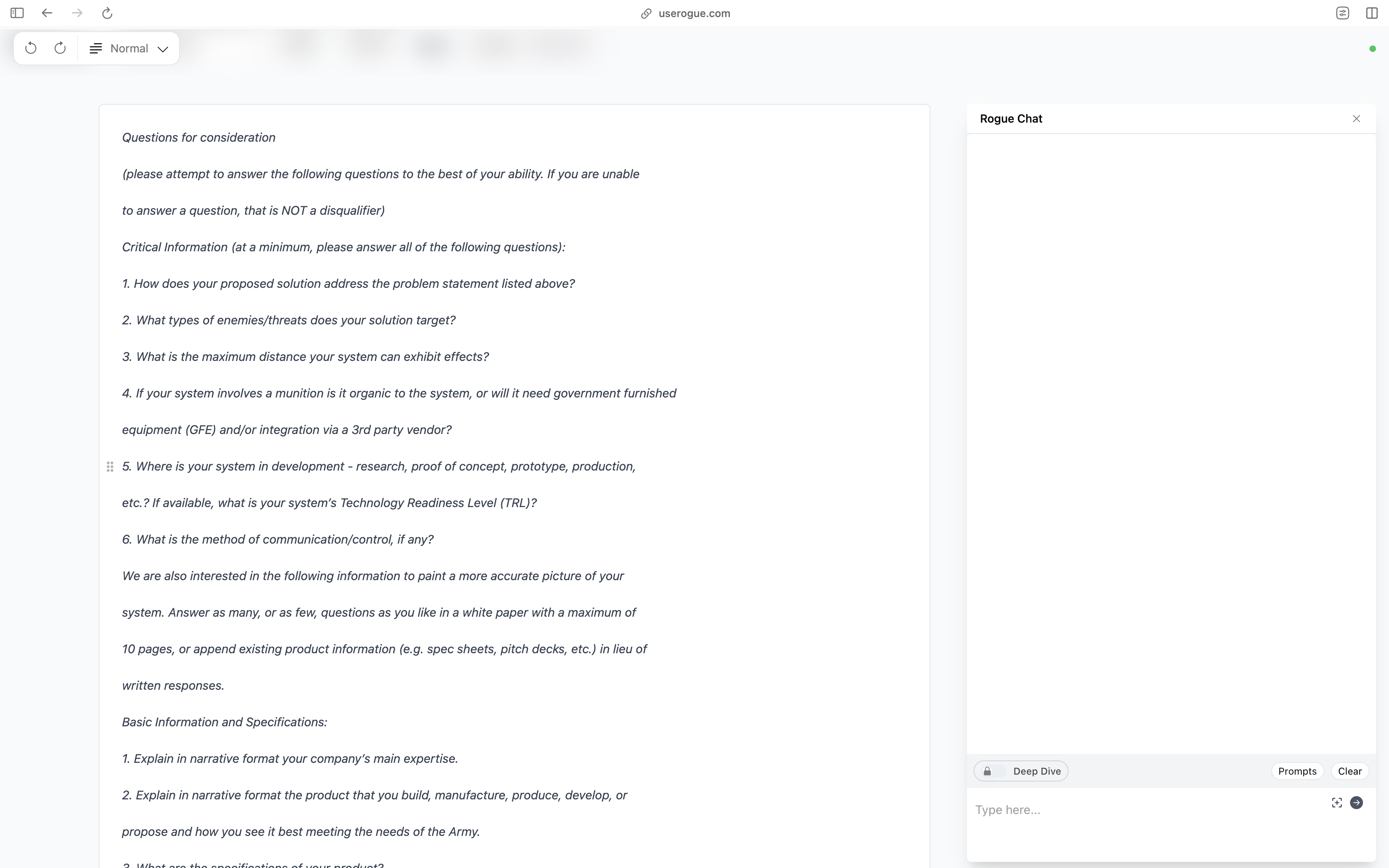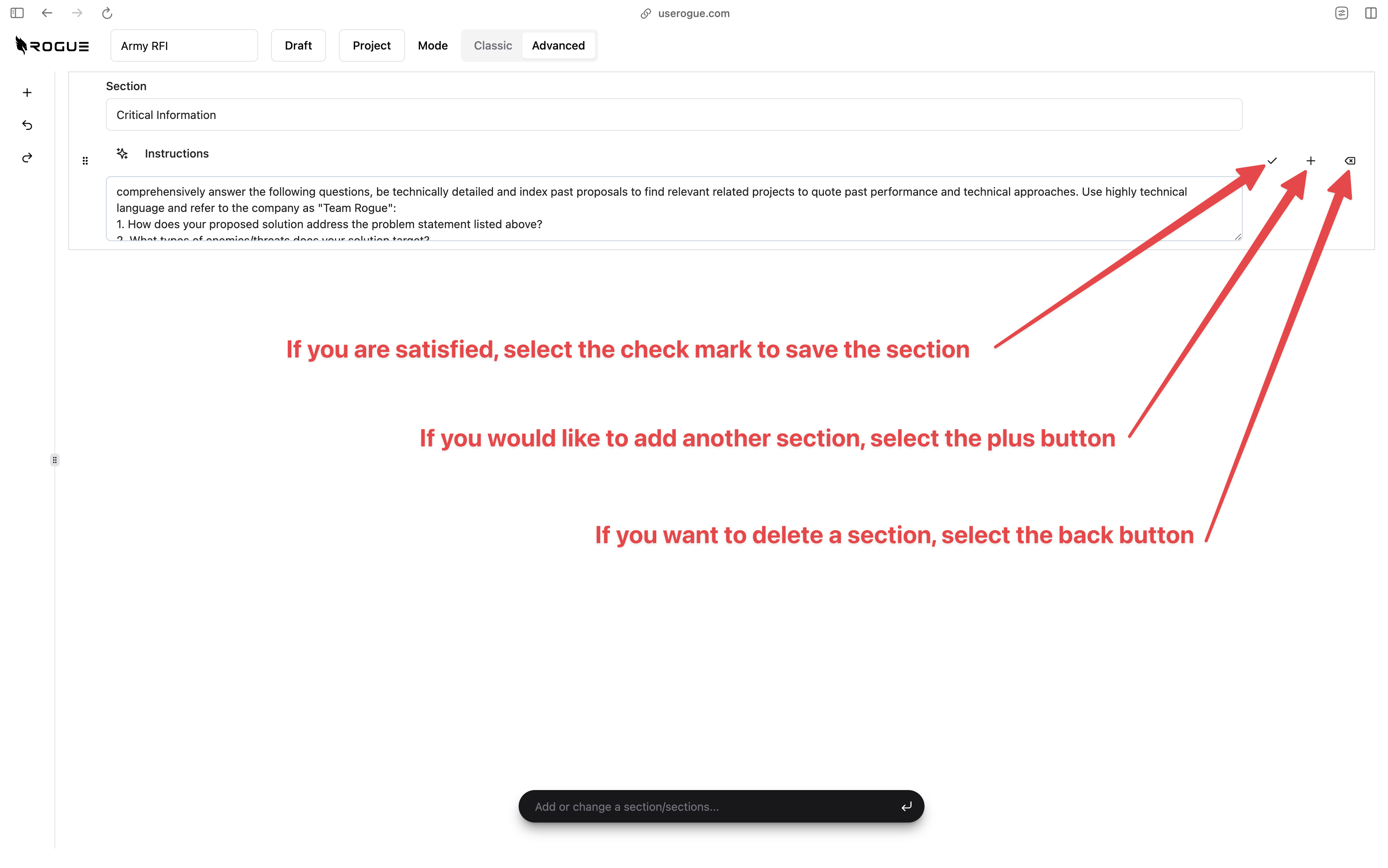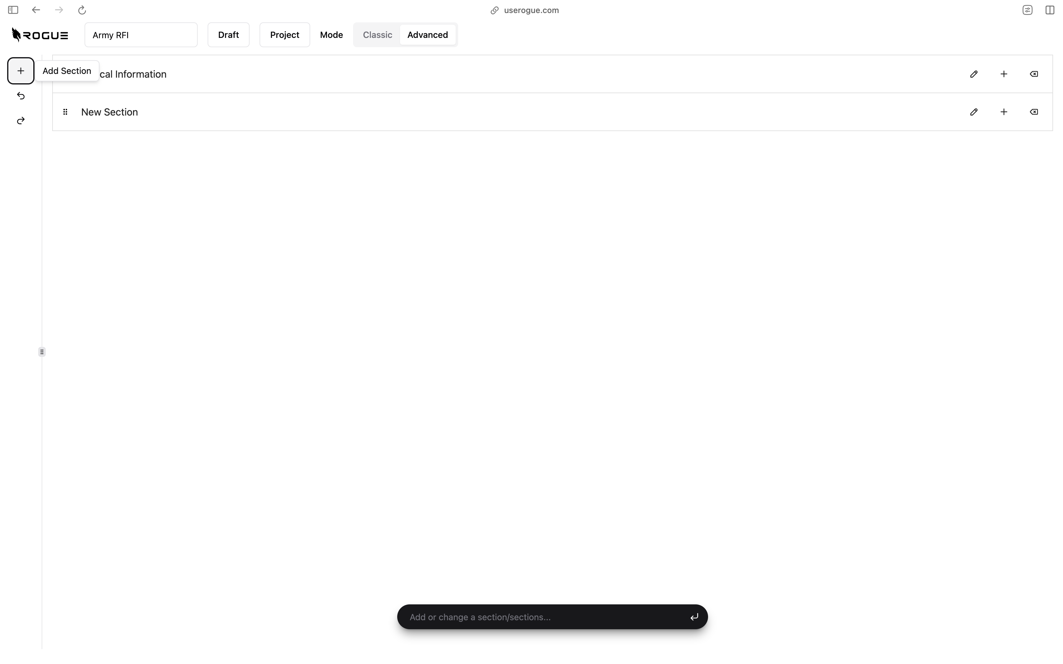 You can also use the chat window to help you create your template. Simply copy the proposal format instructions from the RFI/RFP/RFQ and paste them into the chat window with a simple instruction like “Please create a template from this document”.