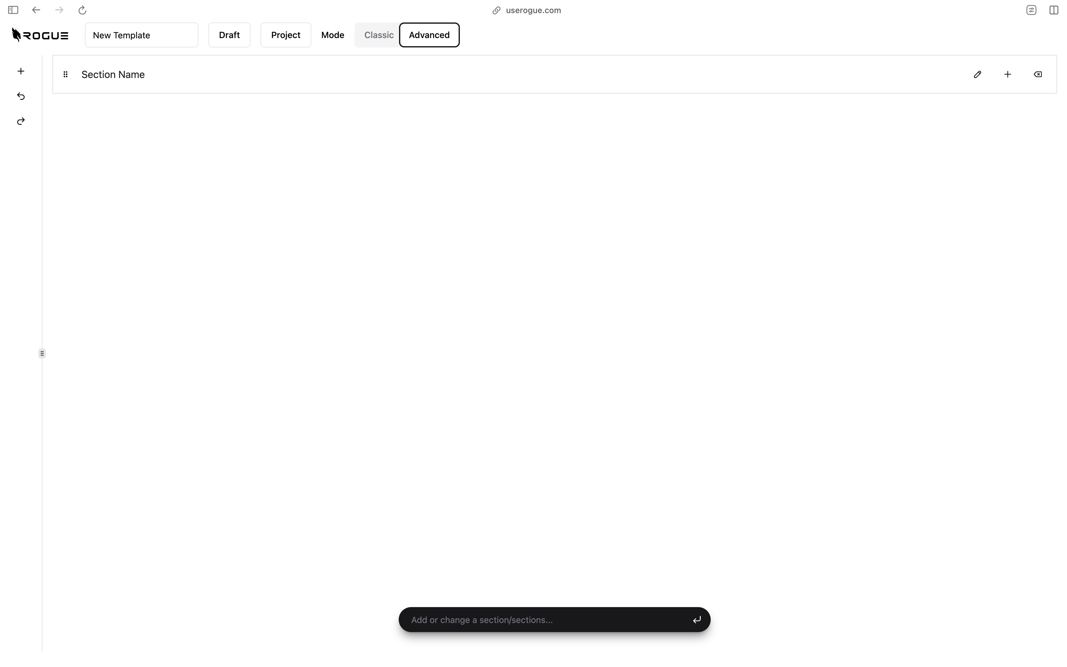 To use the advanced editor, simply select the advanced editor option when creating a template. Then create a section by clicking the “Add Section” button.