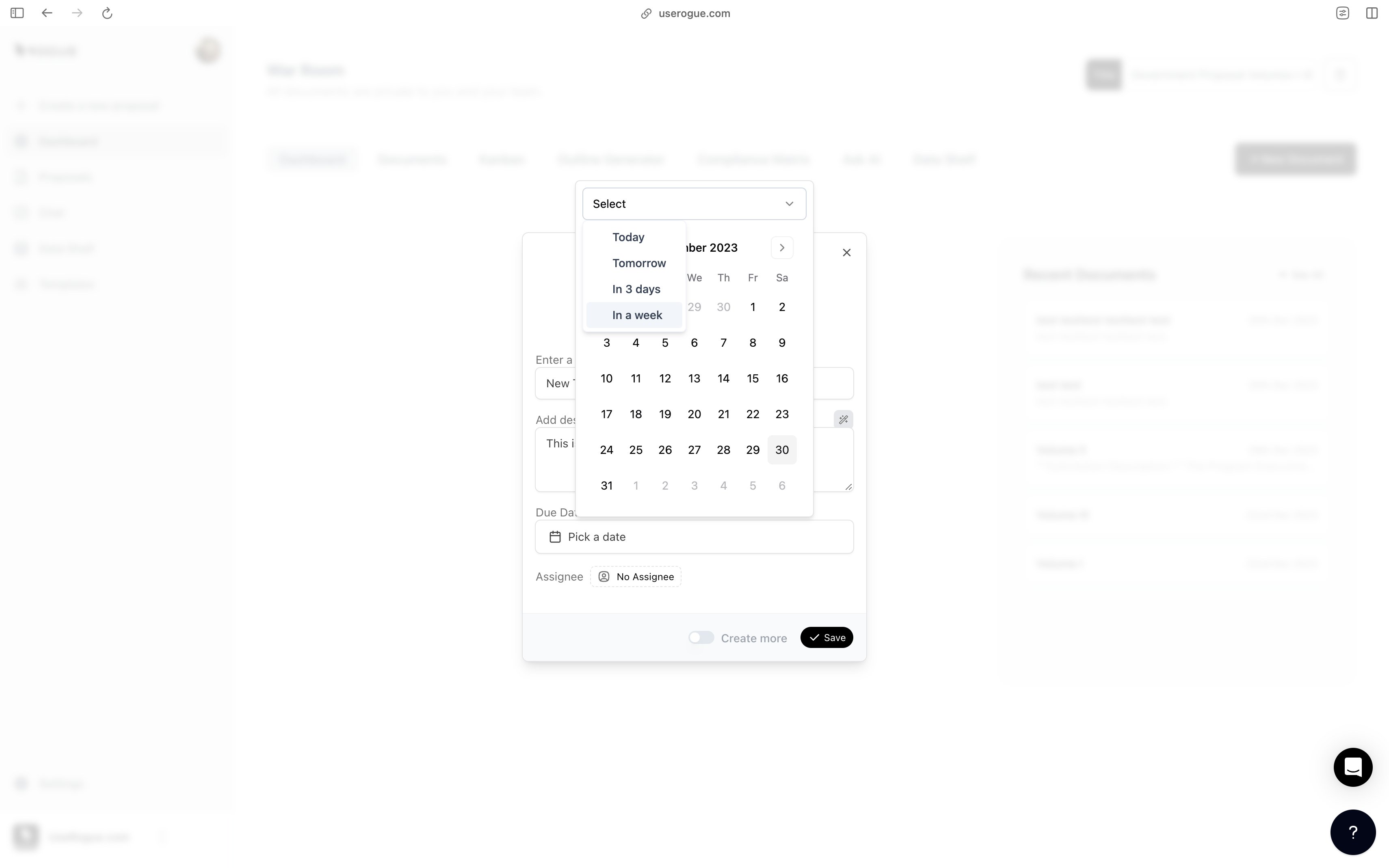 The war room is designed to digitally re-create the industry practice of physical proposal management war rooms. Rather than physical office spaces with proposal documents, and personnel collaborating in person, we re-created that experience within the platform. The war room serves as both a knowledge management and a proposal management environment so that you can maintain all of the documents and the workflows from pre-capture and capture processes through proposal drafting and submission.