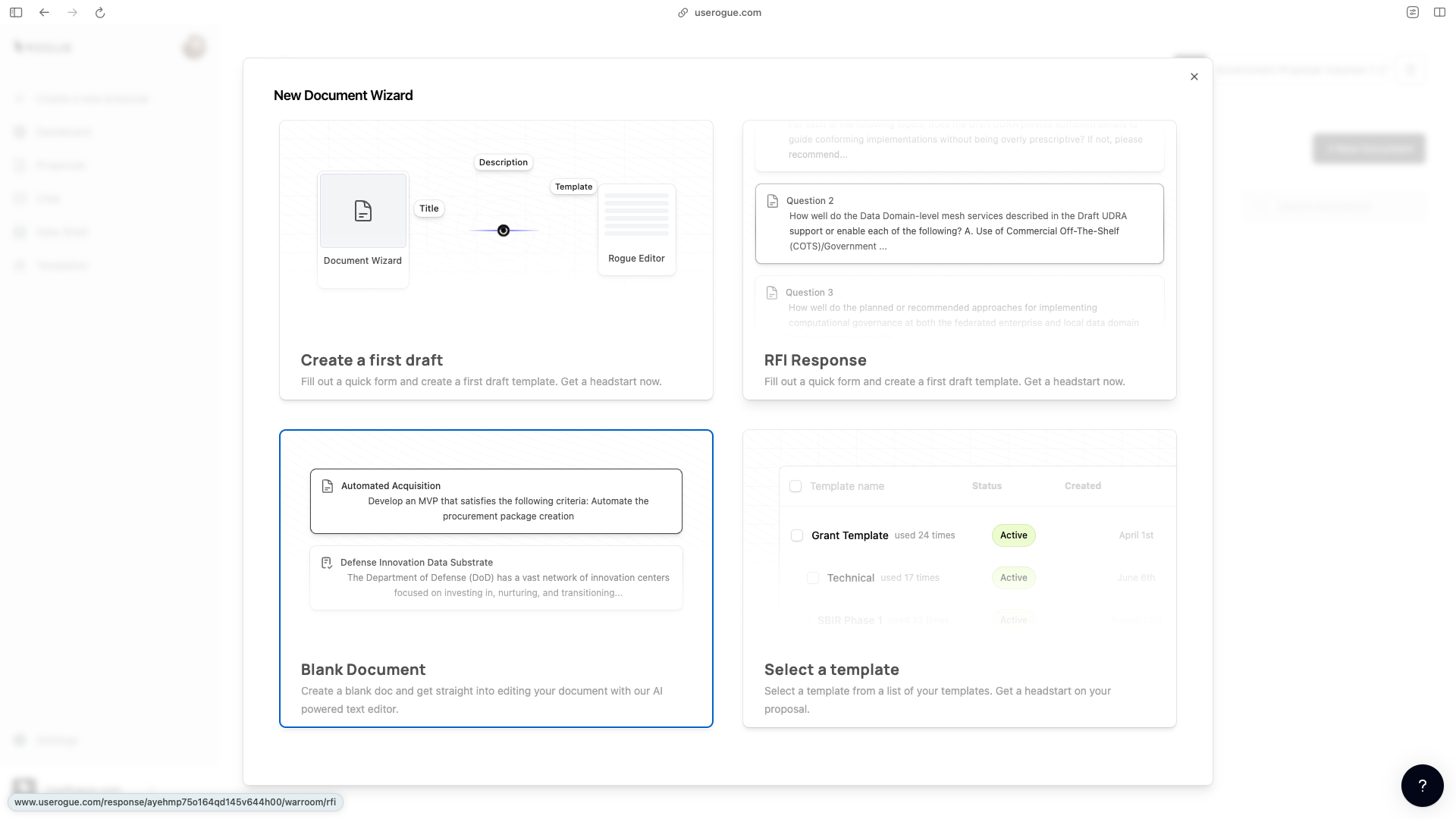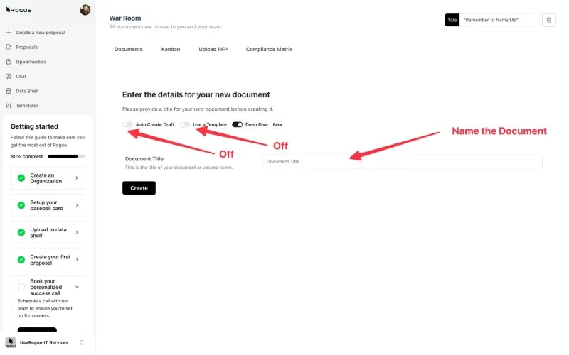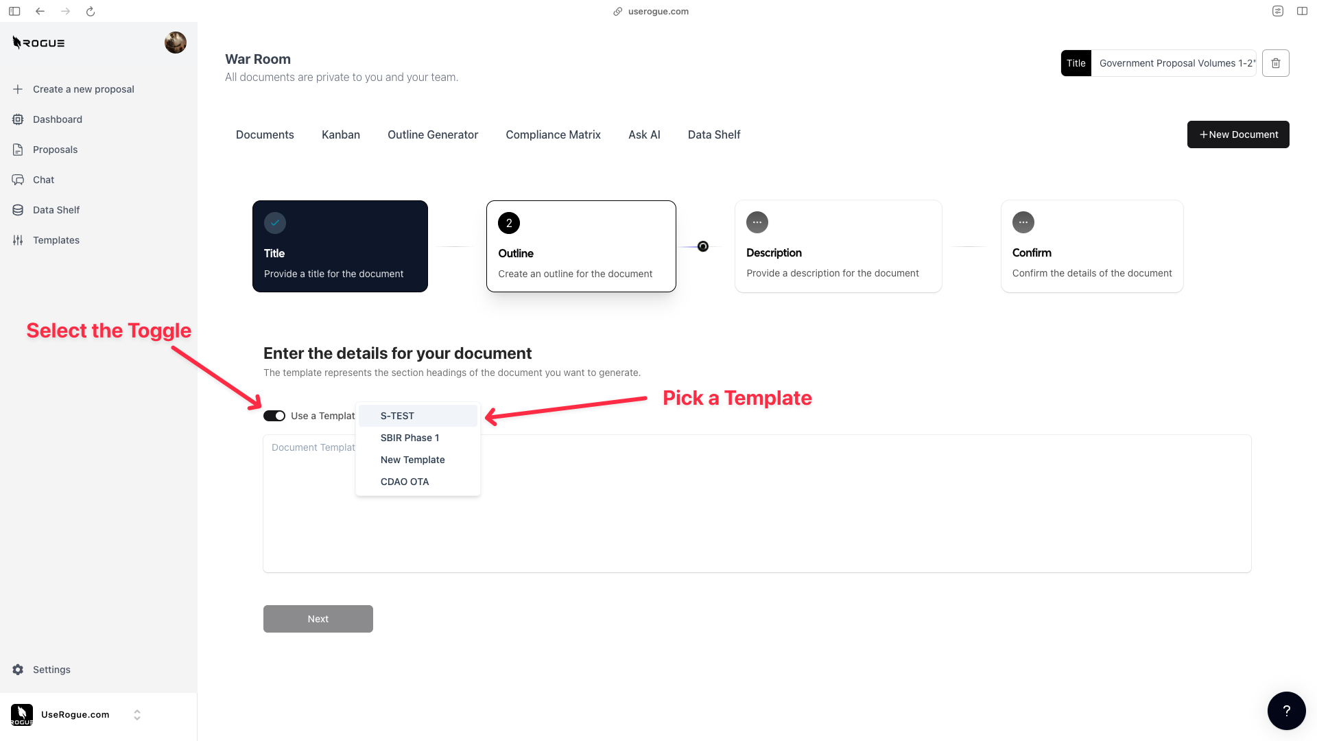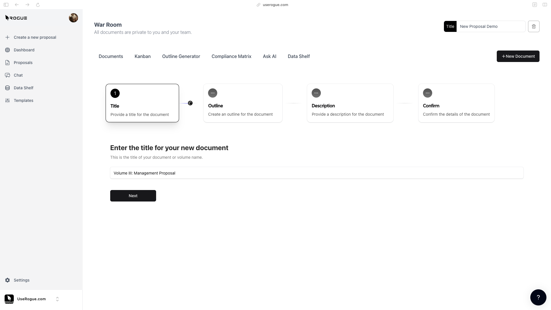 - After uploading, Rogue will create the proposal outline.